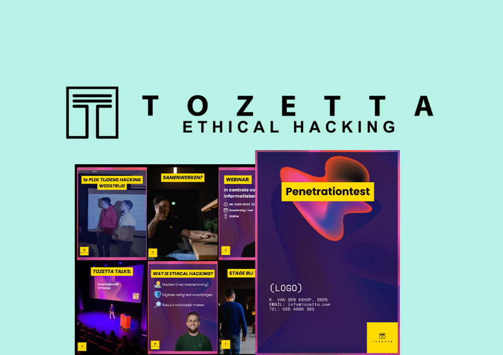 Als grafisch vormgever heb ik voor Tozetta Ethical Hacking een visuele lijn ontwikkeld die hun identiteit als moderne, professionele en